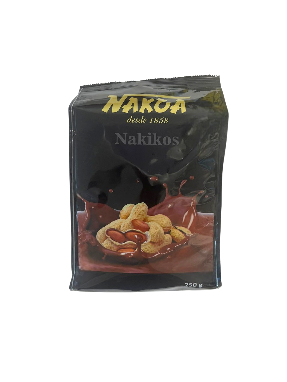 Pequeñas porciones de turrón guirlache de cacahuete bañadas de cobertura de chocolate negro.